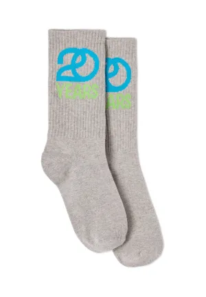 "Als we de collectie in een paar woorden zouden omschrijven, zouden we zeggen: patches, logo’s, maximalisme en unisex. Voor onze 20e verjaardag wilden we groots uitpakken, dus hebben we een reeks uitgesproken logo’s gecreëerd die op een krachtige manier terugkomen op de nieuwe items. De kleuren variëren van zacht (blauw, celadon, botergeel, pastel roze) tot diep (nachtblauw, bordeaux, bruin, kaki), met hier en daar een gedurfde knalkleur op accessoires (grasgroen)."