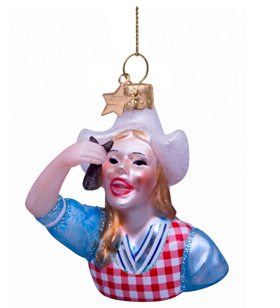 Ruby kan niet zonder glitter en glamour. Haar boom schittert met lippen in knalroze glitter, een pump met panterprint en een glinsterende schoudertas. Alles draait bij haar om bling en lef – kerst wordt pas echt een feestje als het mag stralen.