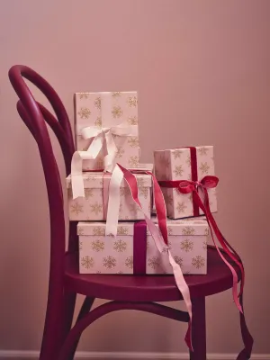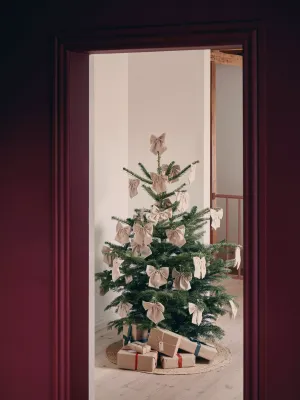 De strik is dit jaar weer een grote trend voor kerst, of het nu als klein detail aan de deurklink hangt, in de kerstboom of aan herbruikbare dennentakken. Ook kunnen handgemaakte strikken op kandelaren en cadeaus eenvoudig zelf worden gemaakt met de klassieke satijnen en velours linten van Søstrene Grene.
