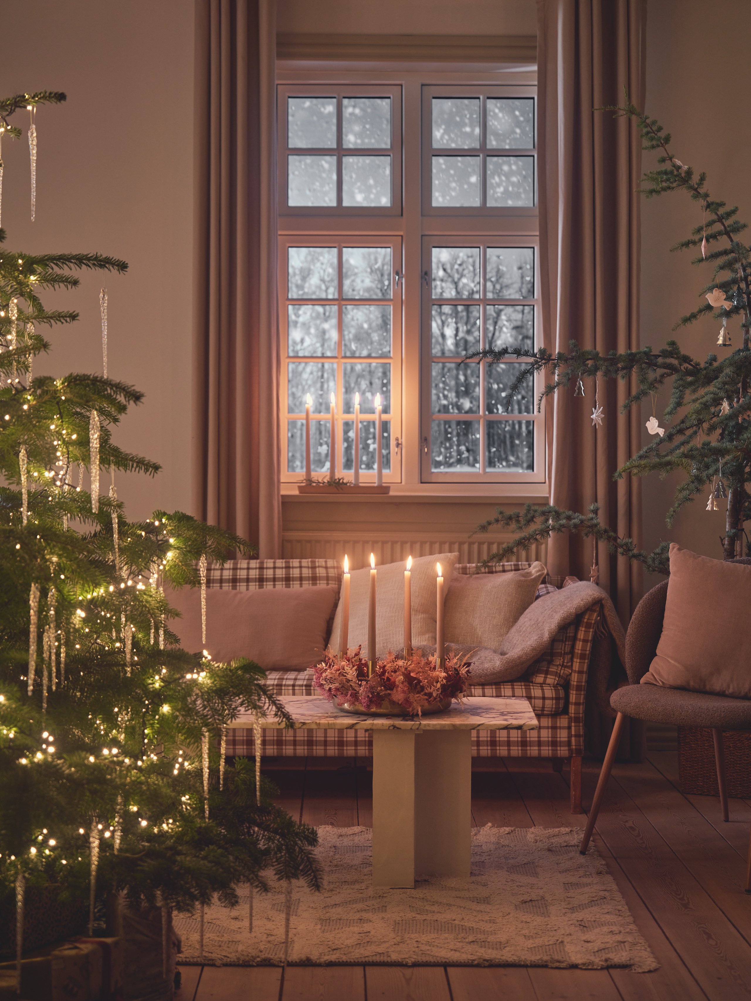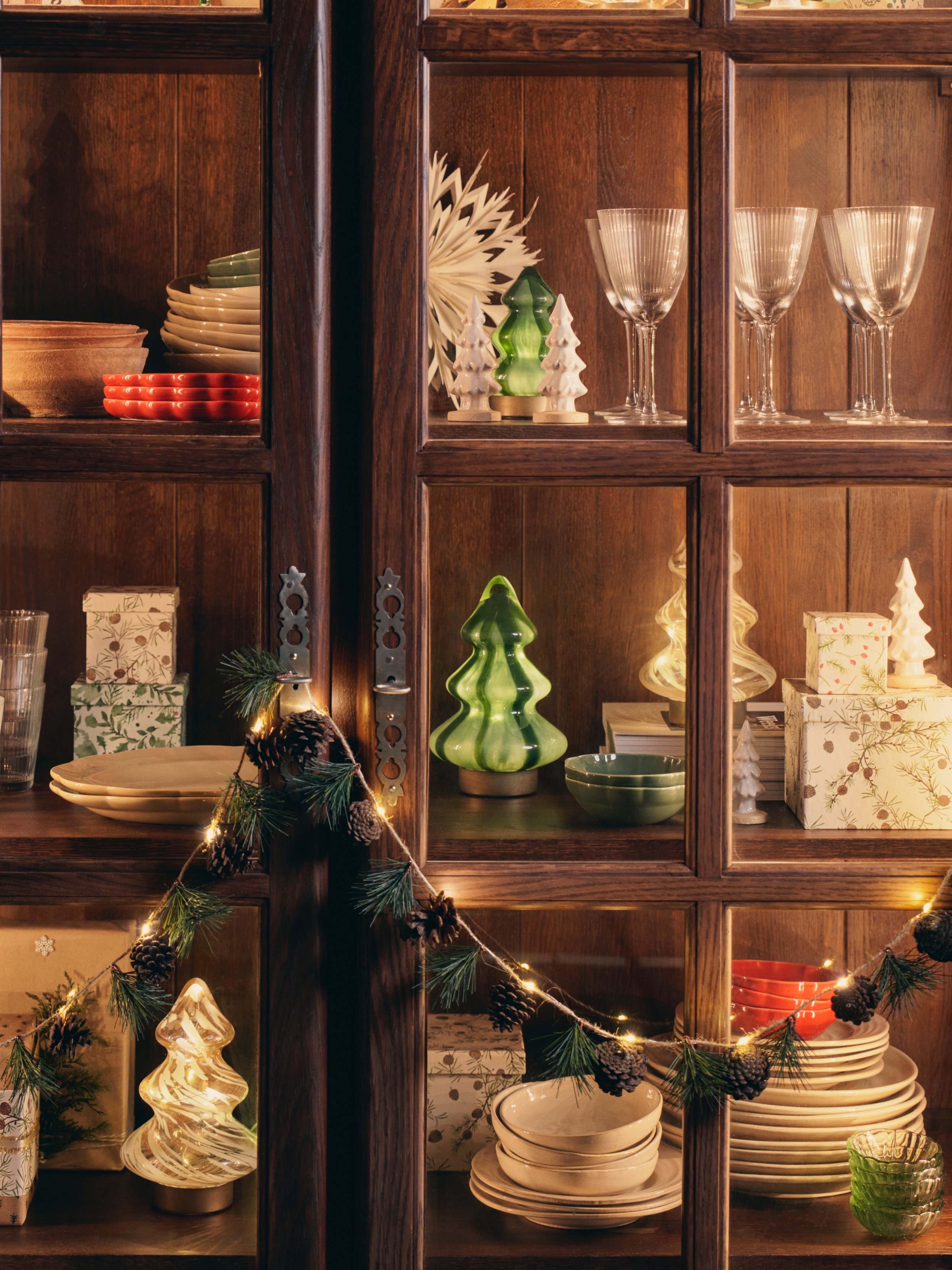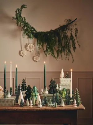 Enkele favorieten van vorig jaar maken opnieuw hun intrede, waaronder de sneeuwvlokslinger en decoratieve papieren sterren in wit en zacht velours. De collectie wordt compleet gemaakt door de klassieke kerstbomen van de zussen, gemaakt van keramiek, glas en gevouwen papier.
