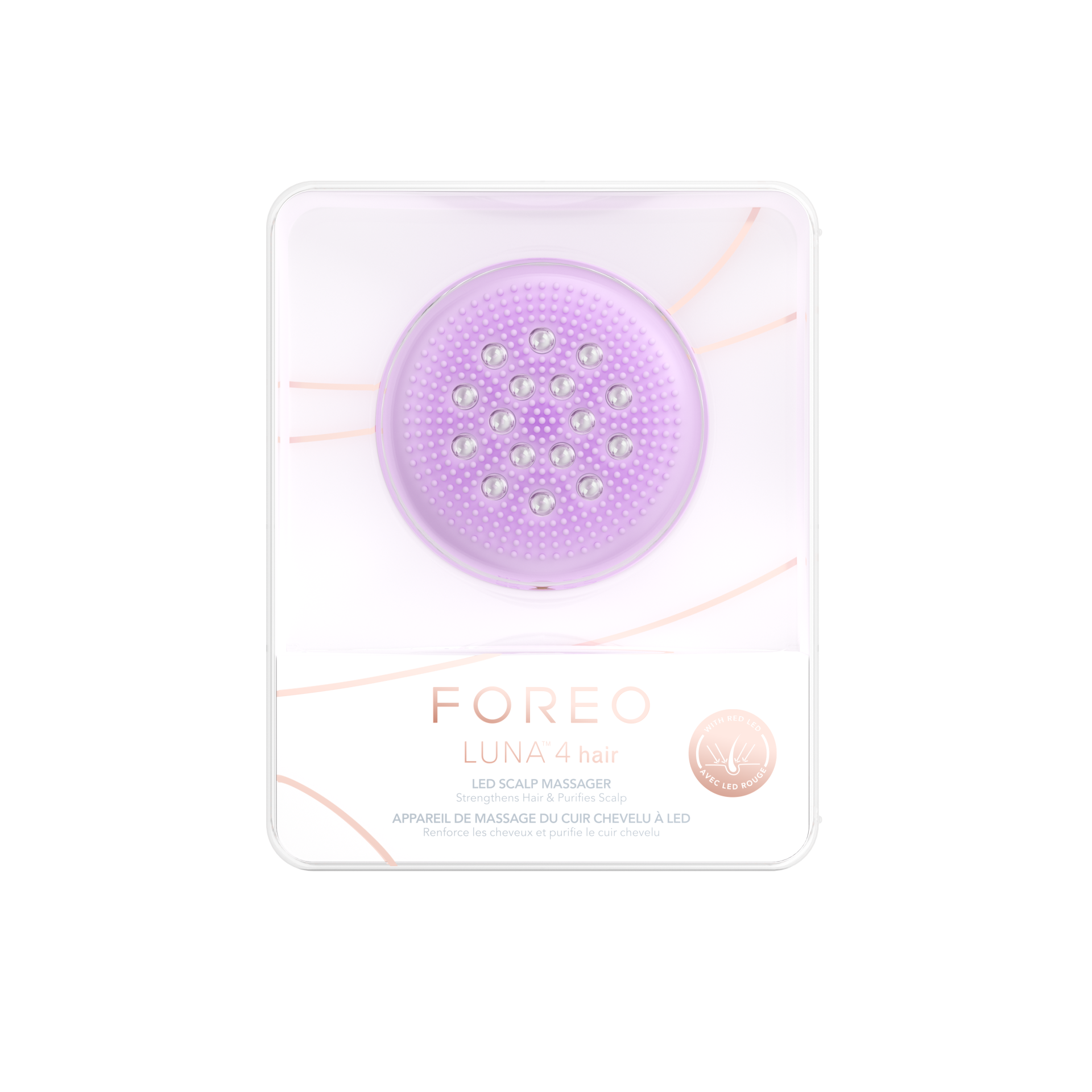 LUNA™ 4 hair maakt gebruik van rood LED-licht & T-Sonic™ massage om vermoeide haarzakjes weer wakker te maken en ervoor te zorgen dat de hoofdhuid schoon en gezond is. De ultra-hygiënische siliconen borstelharen voorkomen dat dode huidcellen, zweet en olie de haarzakjes verstoppen en haaruitval veroorzaken. Ook zorgen deze borstelharen ervoor dat het haar goed wordt verdeeld, zodat het LED-licht de hoofdhuid direct kan bereiken.