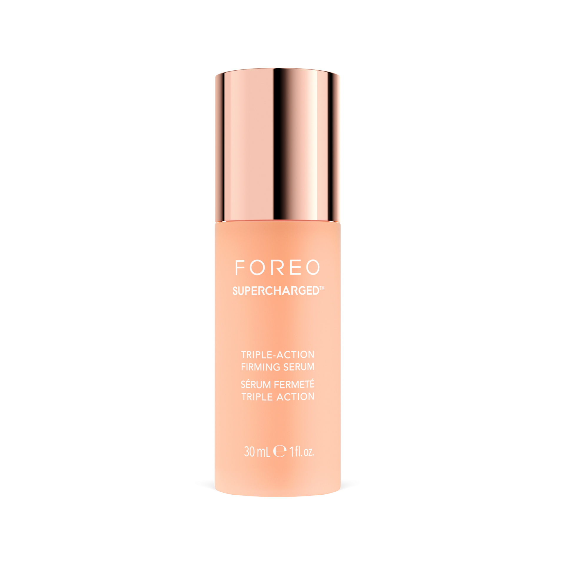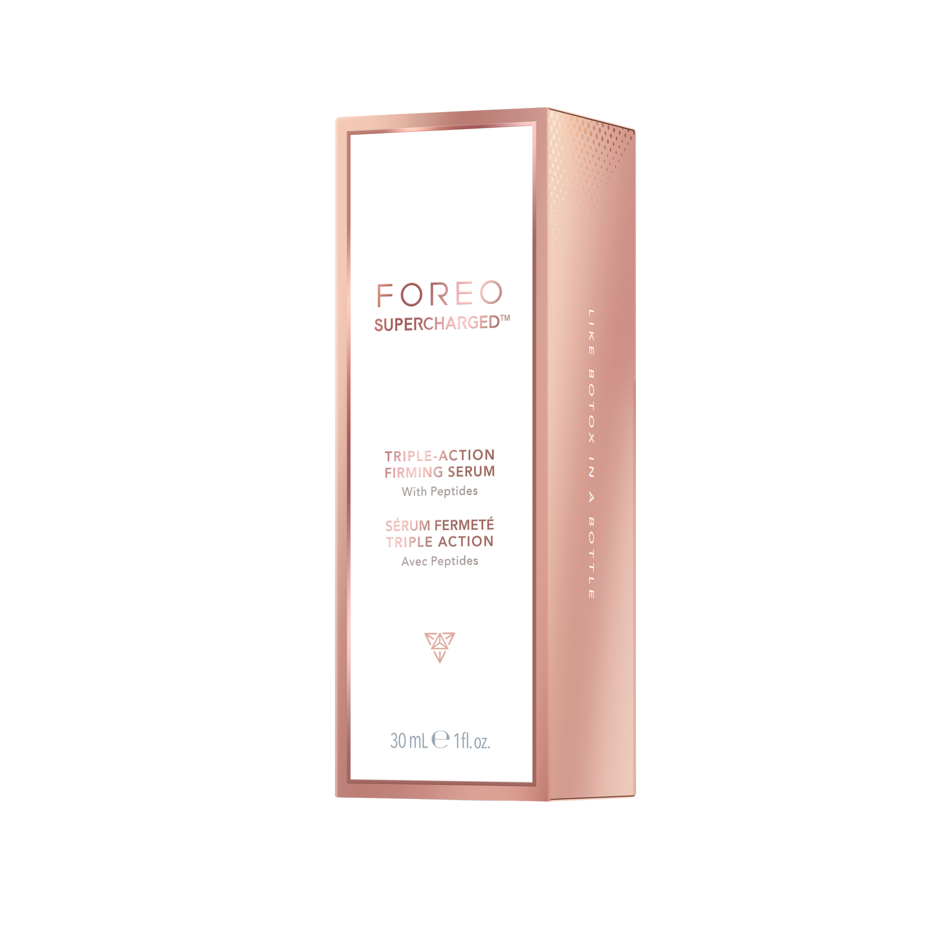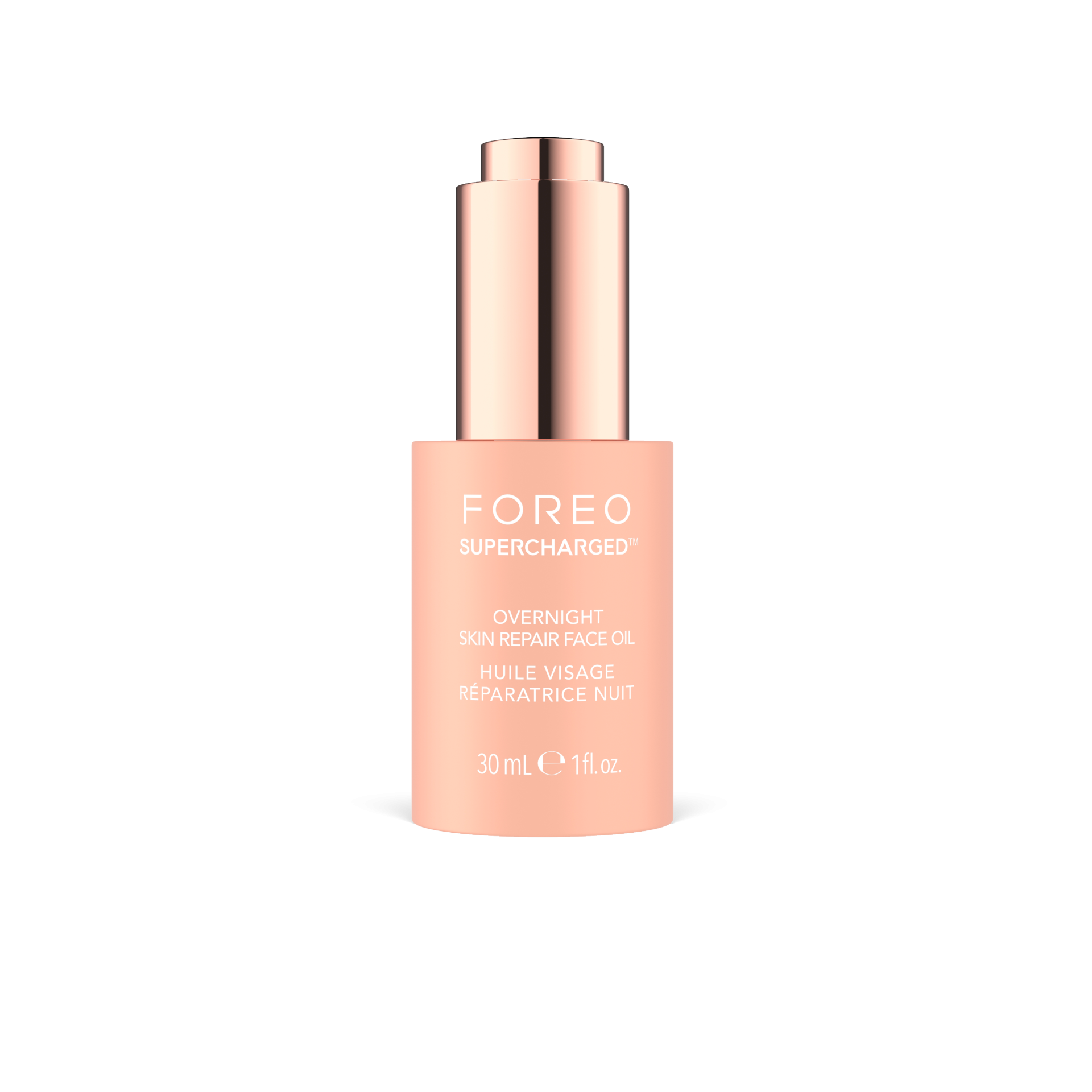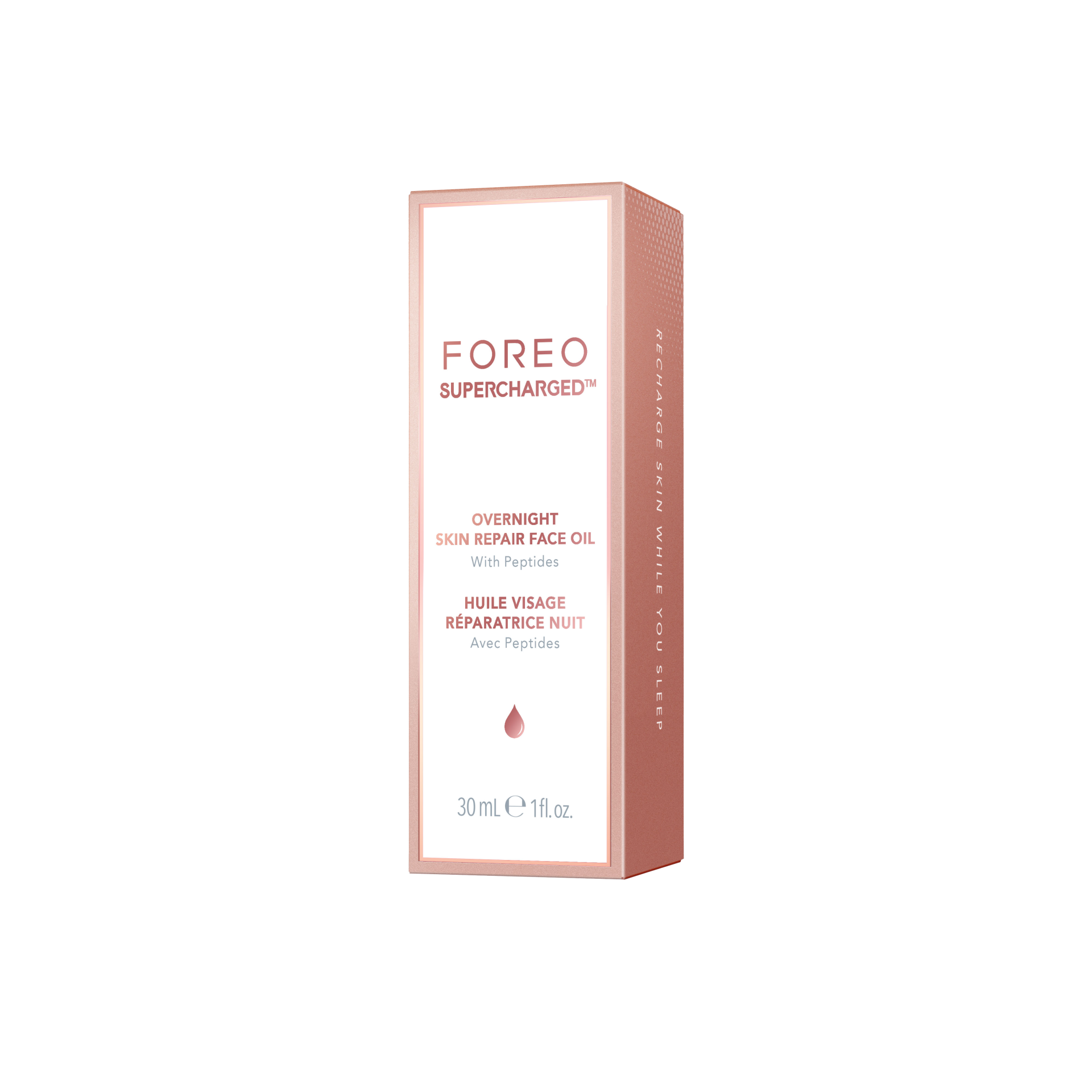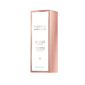 Peptiden zitten in FOREO’s SUPERCHARGED™ Triple-Action Firming Serum en SUPERCHARGED™ Overnight Skin Repair Face Oil, beide ontworpen om de huid te voeden, te versterken en te verstevigen.
