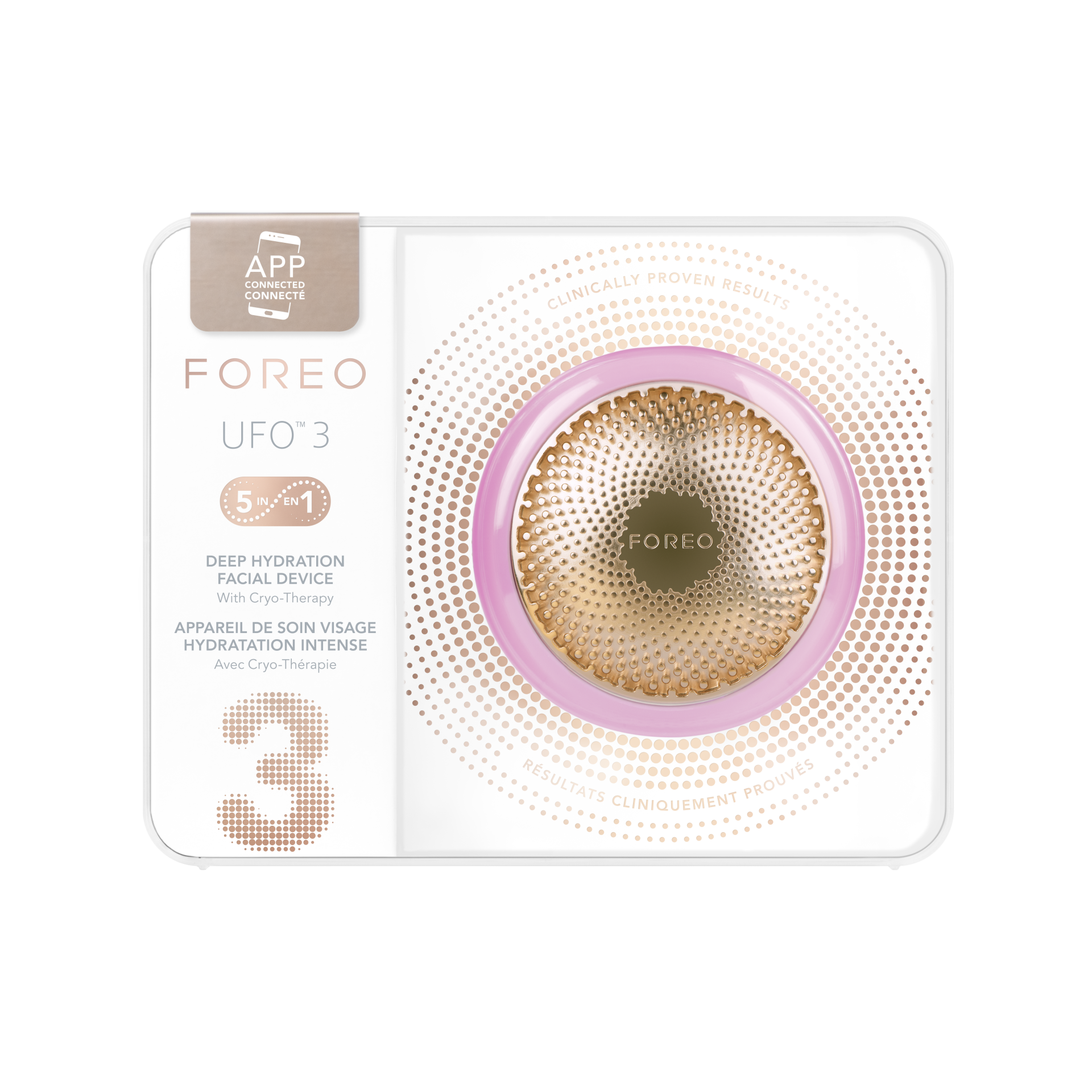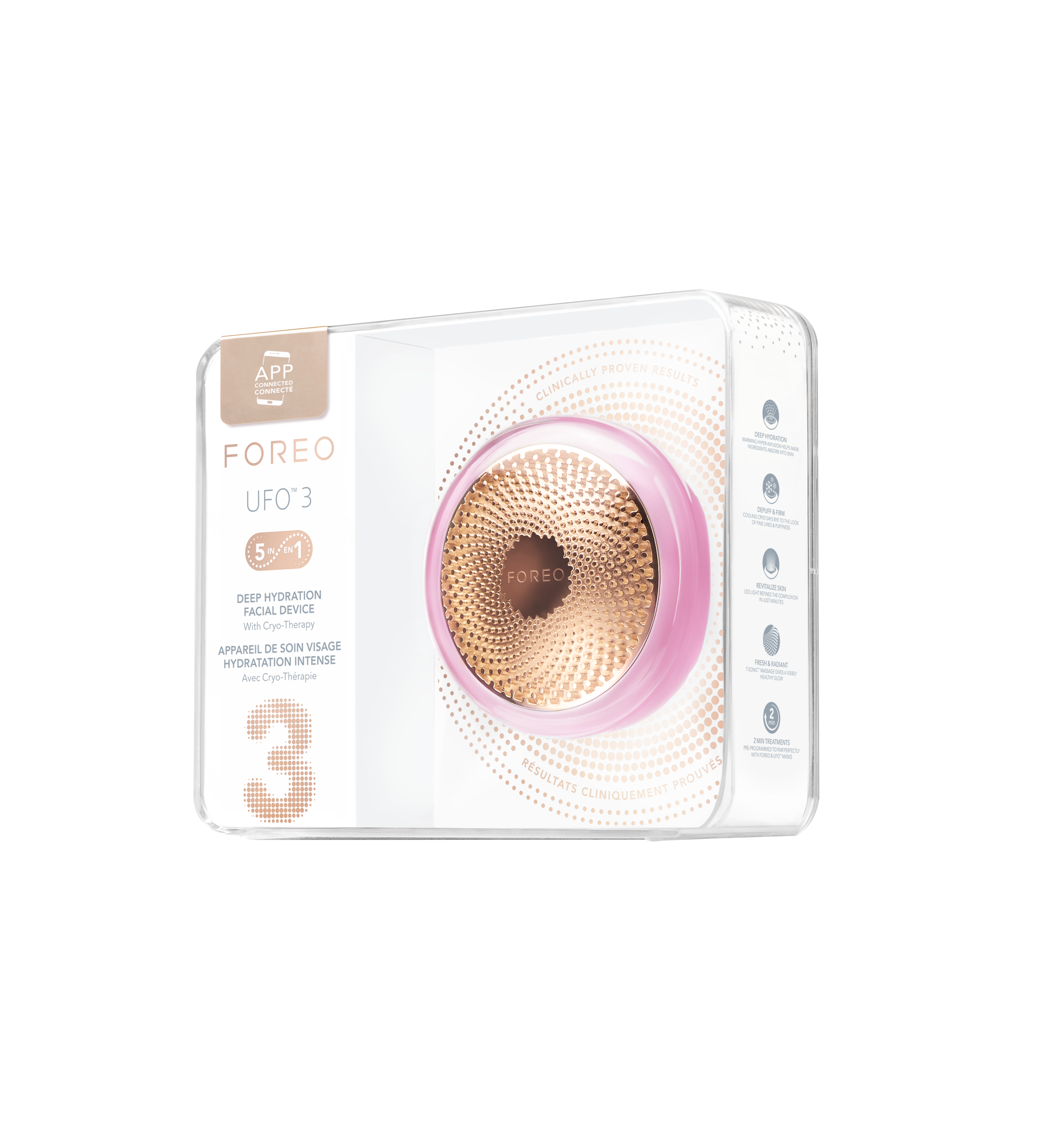 UFO™ 3 is een diep hydraterend anti-aging apparaat dat geavanceerde LED-lichttechnologie combineert met cryotherapie, thermotherapie en T-Sonic™ massage. Dankzij de Hyper-Infusion technologie dringen de actieve ingrediënten van UFO™ Activated Masks diep door in de huid, waardoor hun werking wordt gemaximaliseerd. Dit luxe apparaat biedt vijf anti-aging gezichtsbehandelingen die samen een meeslepende spa-ervaring creëren.