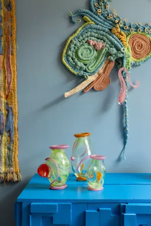 Keja Planken is een multidisciplinaire kunstenaar. Met behulp van oude en nieuwe technieken experimenteert ze met materialen van toen en nu. Haar nieuwe collectie ‘Nature’s Visual Sound’ toont meeslepende glas- en textielobjecten van restanten, gerecyclede en biologische materialen in een eclectische salonsetting. Als een landschap van koraal dat op de bodem van de zee groeit. Het samenbrengen van de geluiden van mens en natuur. Ze behoort tot een nieuwe garde die experimenteert in de kunst- en designscene door tentoonstellingen op unieke locaties te brengen. Sandra nodigt je uit om betekenisvol te verbinden, te reageren en te interacteren.