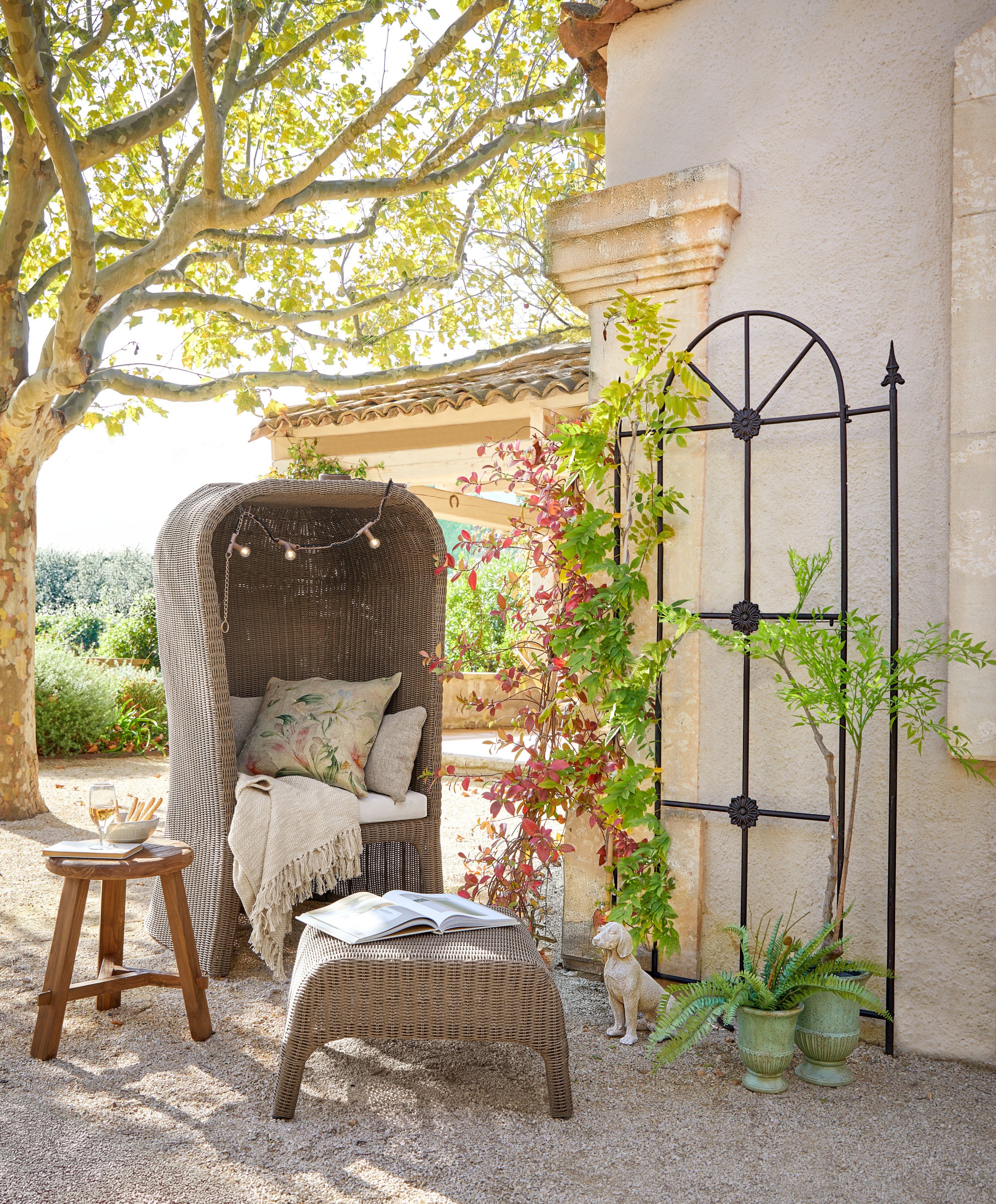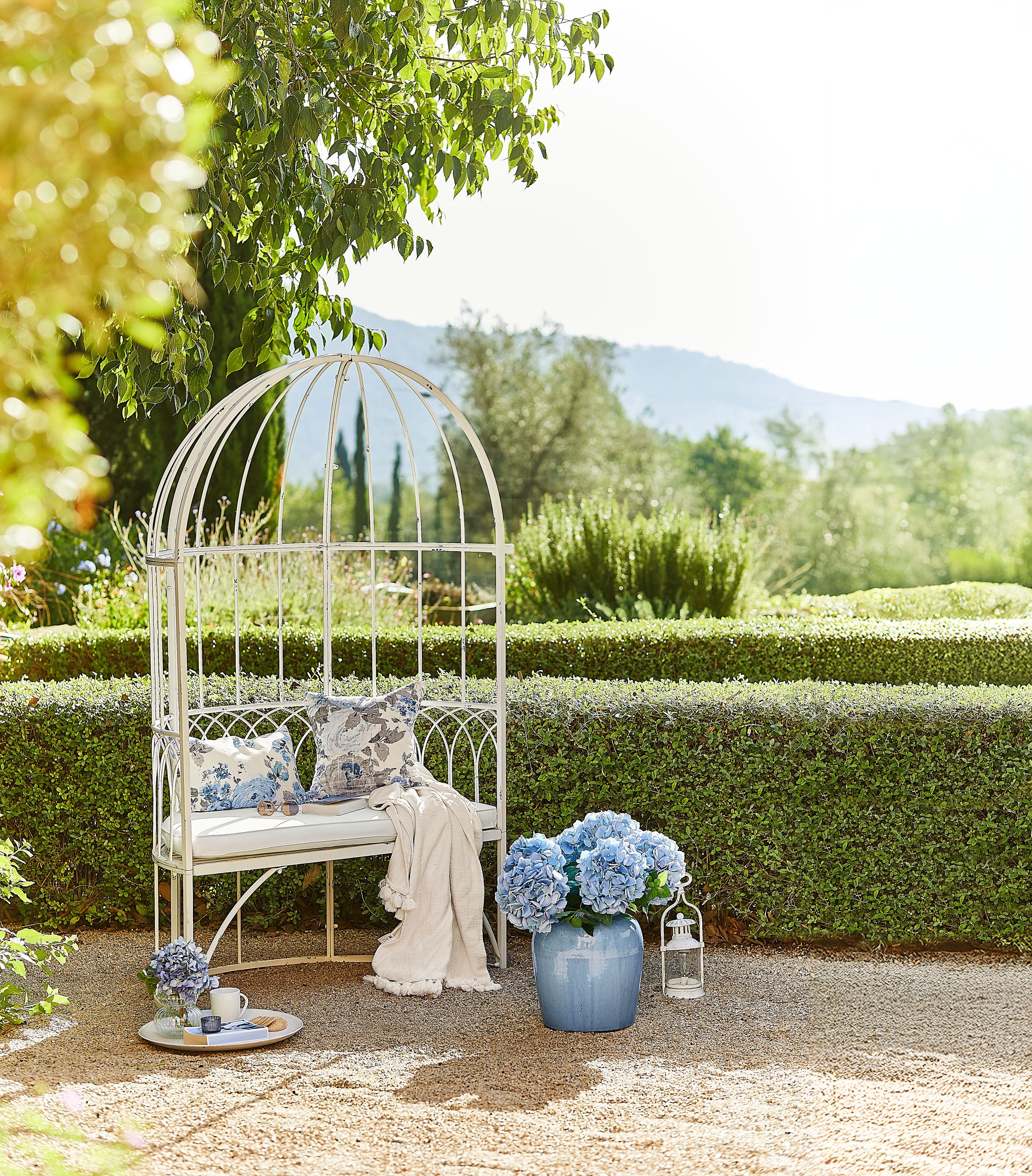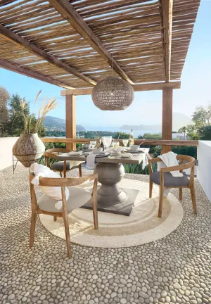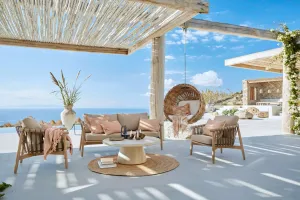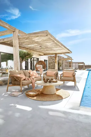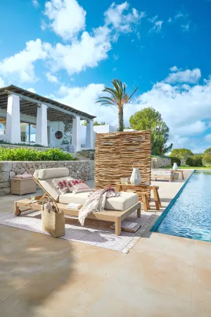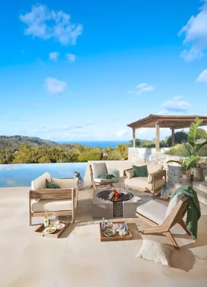 Van royale buitenmeubels tot bijpassende tuinaccessoires – de collectie brengt het ultieme vakantiegevoel naar iedere tuin. Hierbij vormen natuurlijke tinten en rijke materialen de basis, aangevuld met verfijnde patronen. Denk aan houten loungestoelen, vloerkleden met karaktervolle designs, kussensets en servies van steengoed.