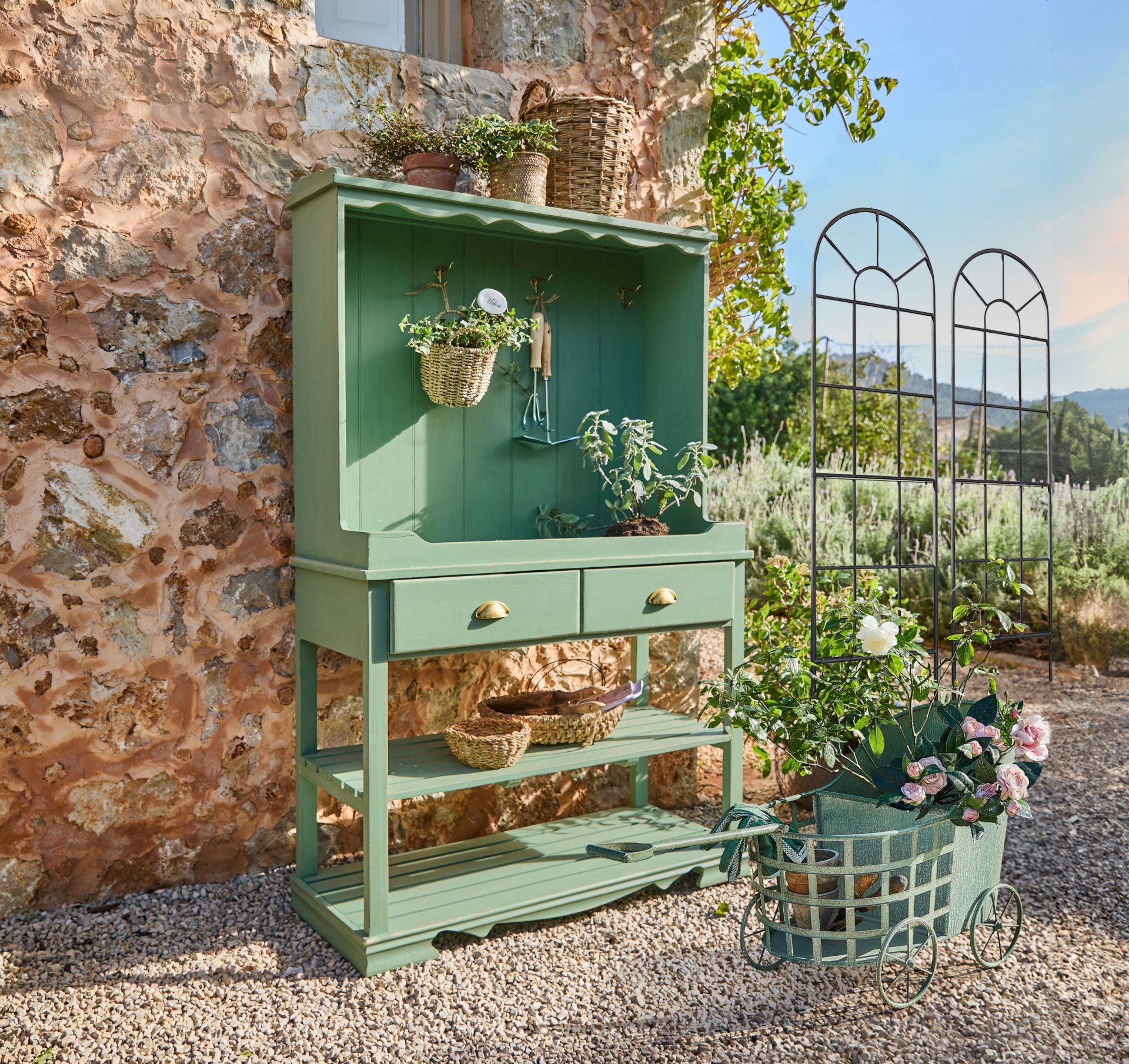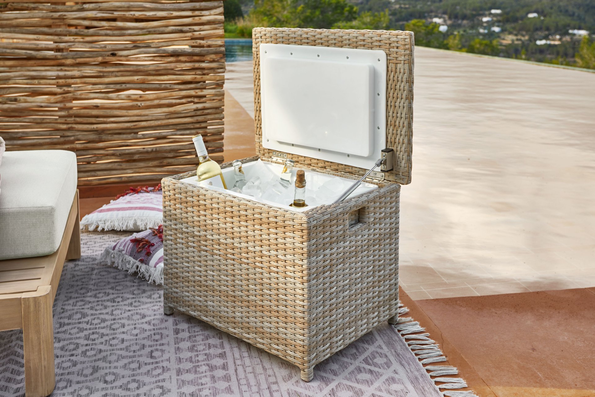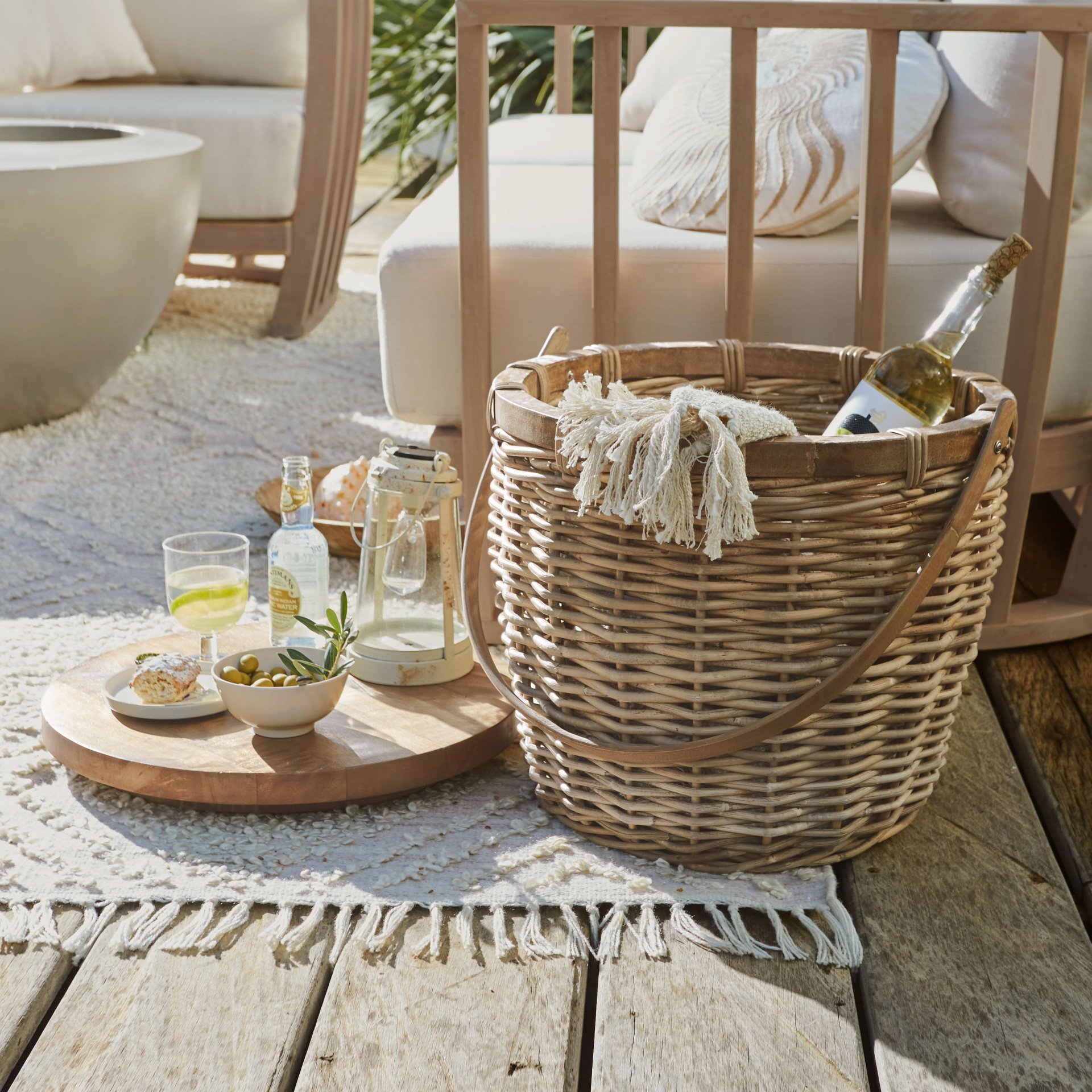 Van royale buitenmeubels tot bijpassende tuinaccessoires – de collectie brengt het ultieme vakantiegevoel naar iedere tuin. Hierbij vormen natuurlijke tinten en rijke materialen de basis, aangevuld met verfijnde patronen. Denk aan houten loungestoelen, vloerkleden met karaktervolle designs, kussensets en servies van steengoed.