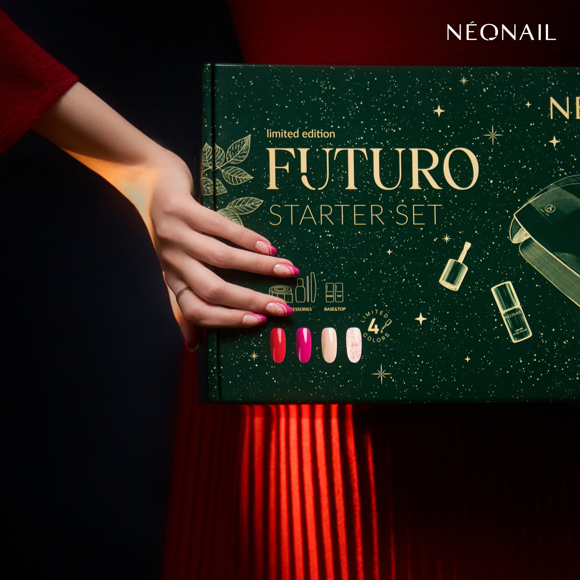 Dit is hét cadeau voor iemand die graag wil beginnen met een salonwaardige thuismanicure. In deze volledige starterset zitten alle goodies om gellak mee aan te brengen, inclusief de FUTURO LED-lamp. Deze limited-edition versie bevat maar liefst vier exclusieve kleuren in rode en roze tinten. Creëer een schitterende look en geniet thuis van een selfcare moment.