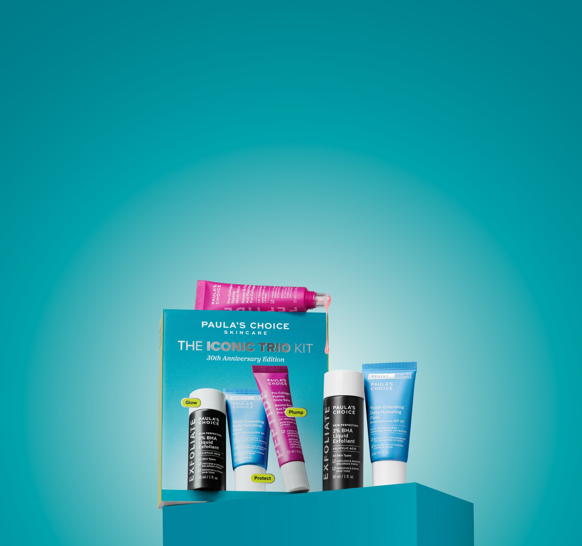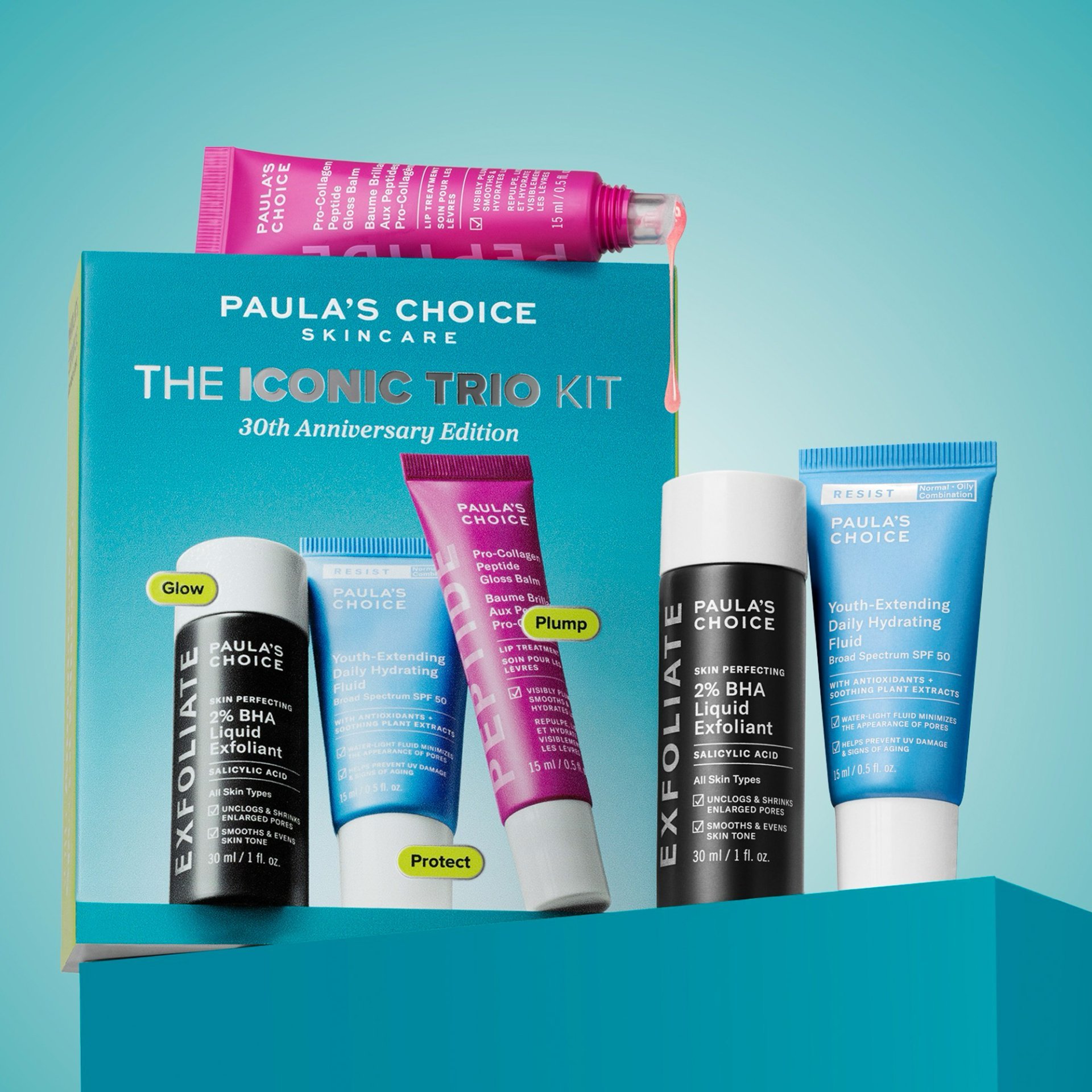 Om de mooiste huidresultaten te vieren, lanceert Paula’s Choice de 30th Anniversary Special Edition Kit met de wereldwijde bestseller 2% BHA Liquid Exfoliant, fanfavoriet moisturizer met SPF en de nieuwe Peptide Gloss Balm. Voor een fantastische glow, bescherming tegen de zon met transparante finish, en vollere lippen zonder irritatie.