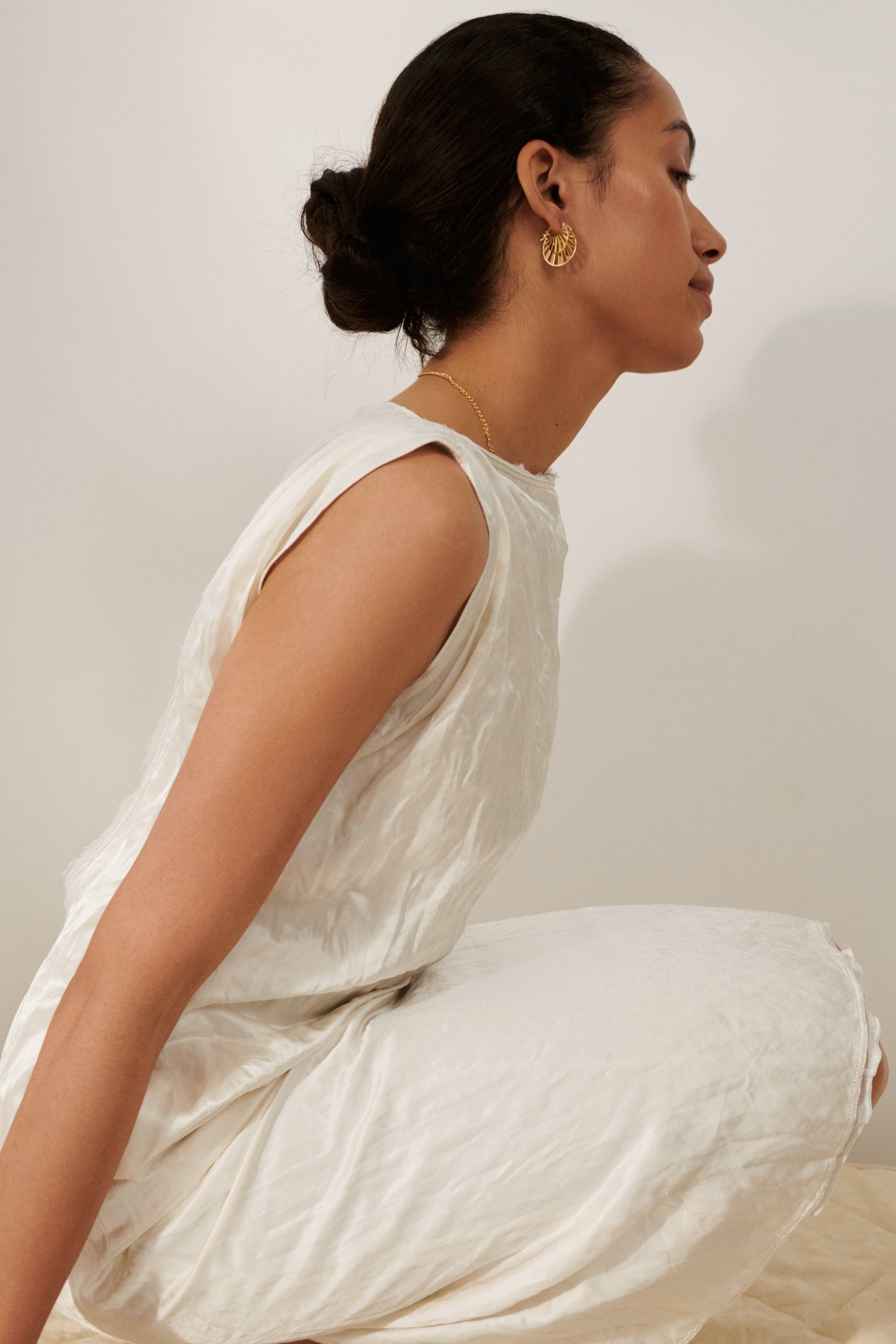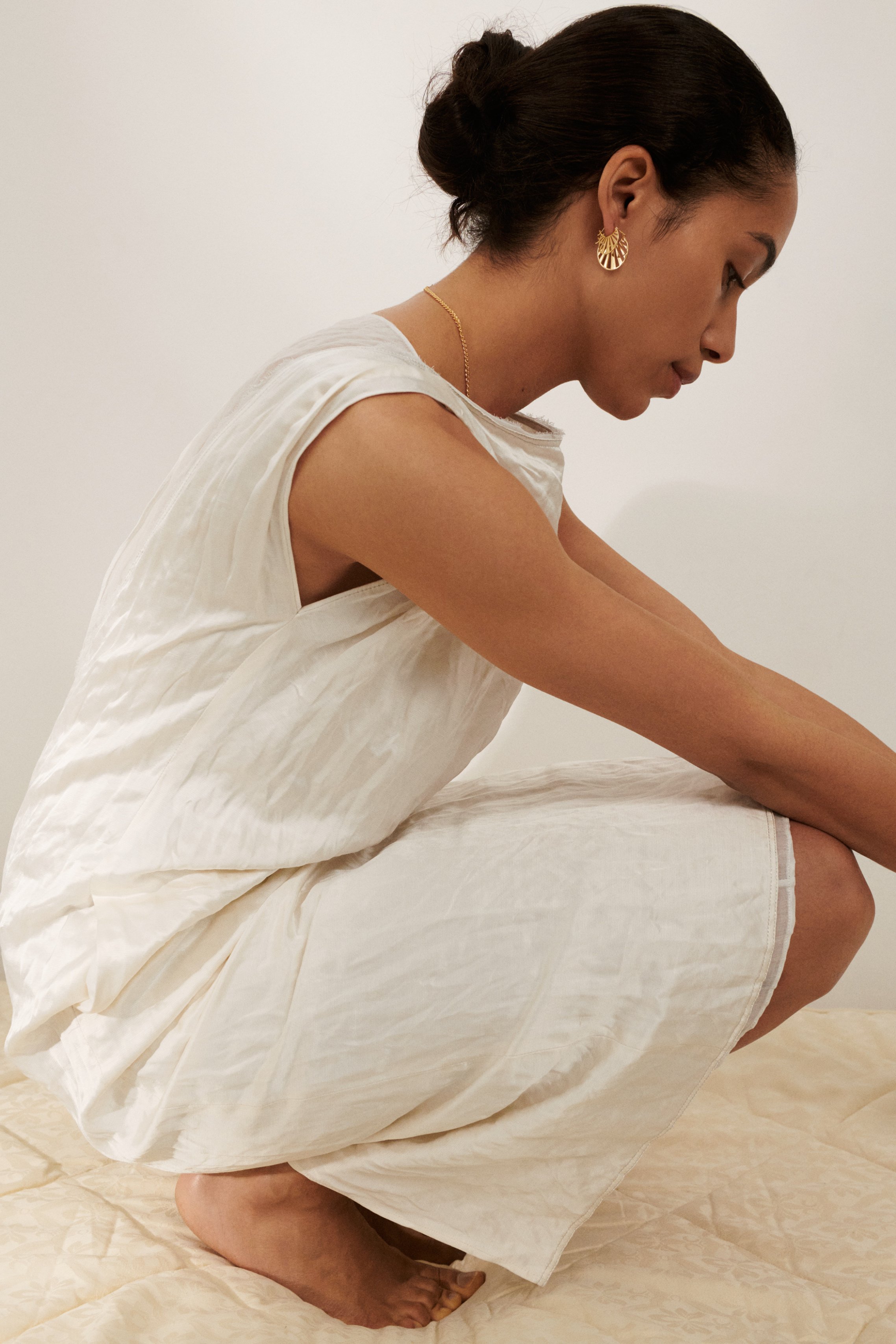Elk item in de Soft Sky collectie straalt eenvoud en rust uit, geïnspireerd door de natuur. Deze drop kent verfijnde sieraden in zilver en verguld goud, met af en toe een subtiele toevoeging van een parel. De sieraden brengen de zachtheid en ingetogen schoonheid van de herfst tot leven, waarbij de ronde vormen en natuurlijke lijnen een gevoel van beweging en harmonie oproepen.