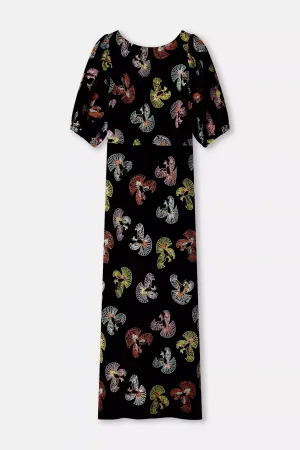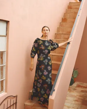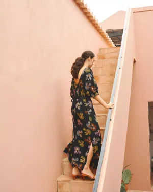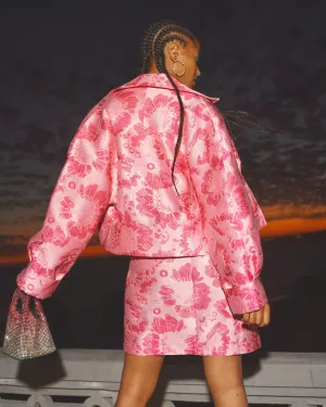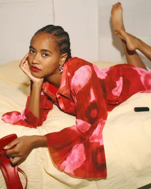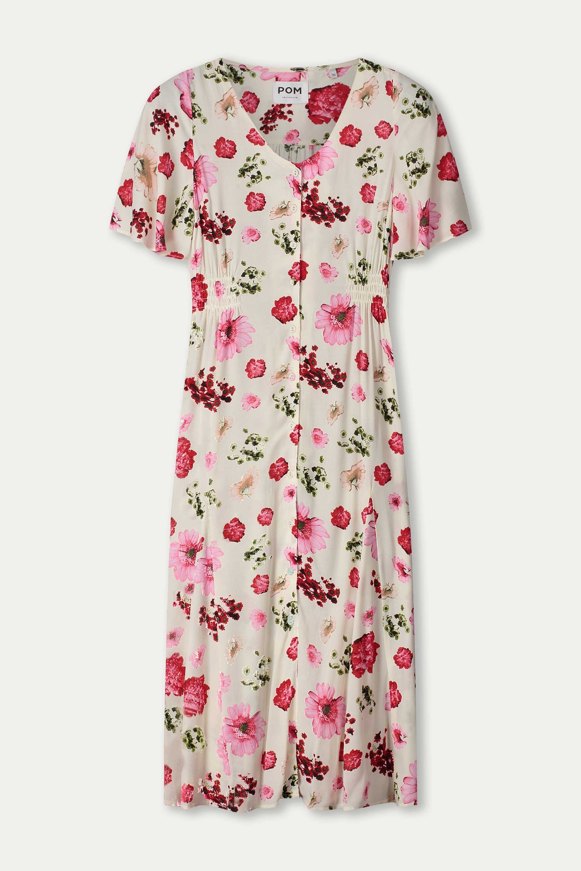 De prints zijn een remix van POM-klassiekers. Oude schildertechnieken en vintage elementen krijgen een frisse twist. Van een klassieke Toile de Jouy met florale en dierlijke motieven tot accenten van fruit en Amsterdamse symboliek, zoals de drie Andreaskruizen. Eén bloem groeit zelfs uit tot een eigen print: oversized, handgeschilderd en vol in bloei.